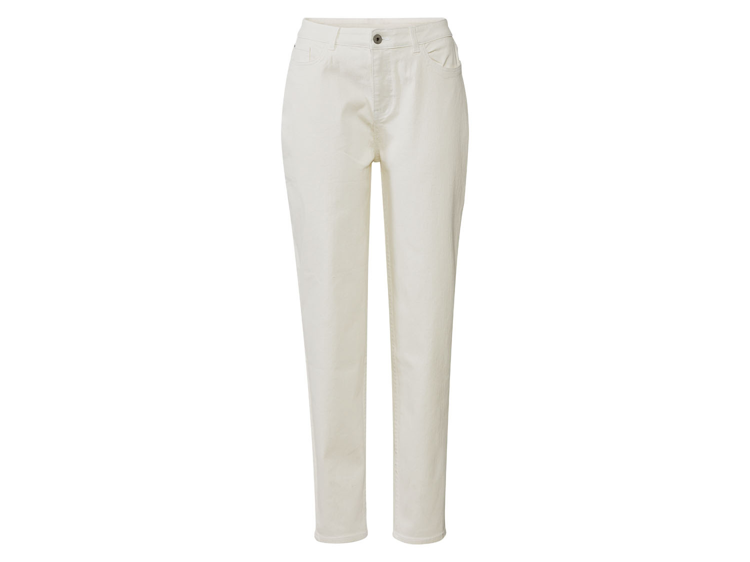 Deze jeans heeft een hoge taille en heeft zodoende een taille onderstrepende snit. Bovendien heeft hij een modieuze enkellengte.