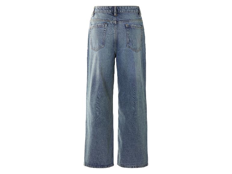 De Wide Leg jeans is een trendy interpretatie uit de jaren ‘90. Hij zit strak rondom de heupen en de billen en heeft een wijdere snit aan de bovenbenen.